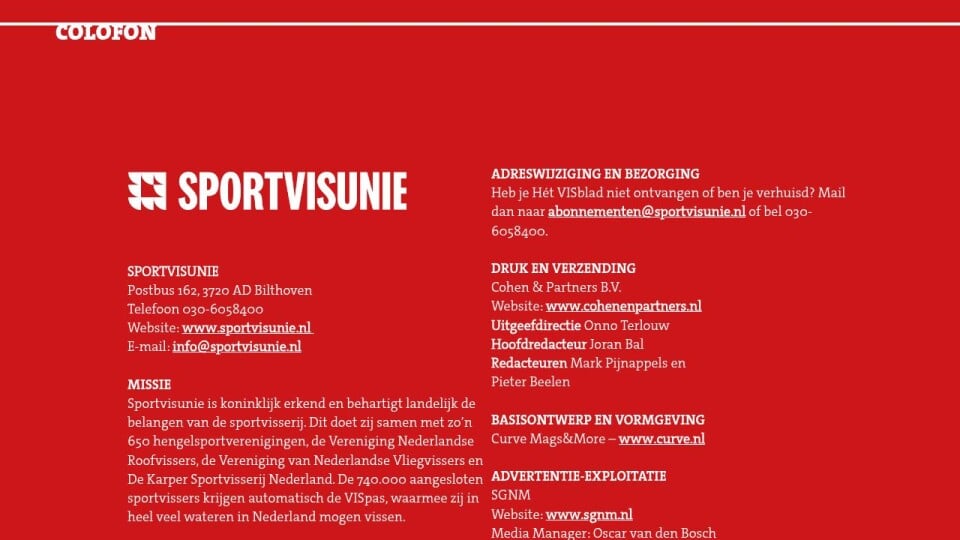 Heb je Hét VISblad niet ontvangen of ben je verhuisd? Mail dan naar abonnementen@sportvisunie.nl of bel 030-6058400.