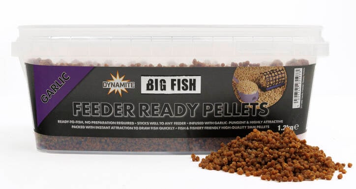 De Big Fish Feeder Ready Pellets van ­Dynamite Baits zijn gebruiksklare pellets die speciaal zijn ontwikkeld voor het feeder- en methodvissen. Deze kleine pellets (2 mm) hebben een uitstekende kleefkracht, zodat je ze zonder enige voorbereiding direct in je method of hybride feeder kunt gebruiken en snel een voerplek creëert. Naast de smaken Sweet Banoffi en Krill zijn deze pellets nu ook verkrijgbaar met Garlic flavour.