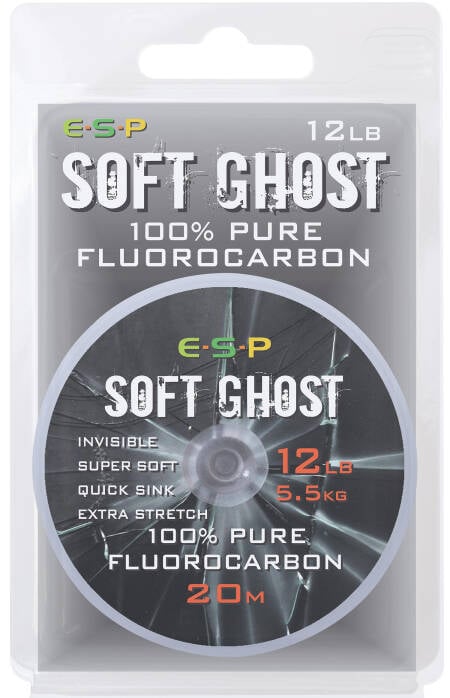De nieuwe Soft Ghost Fluorocarbon van ESP is zachter dan het origineel en kan direct – zonder stoom – van de spoel worden rechtgetrokken. Dit onderlijnmateriaal zinkt zeer goed, is nagenoeg onzichtbaar en bevat meer rek dan doorsnee fluoro­carbon onderlijnmateriaal. Op een klosje zit 20 meter lijn. Verkrijgbaar in uitvoeringen van 10, 12, 15 en 18 lb.