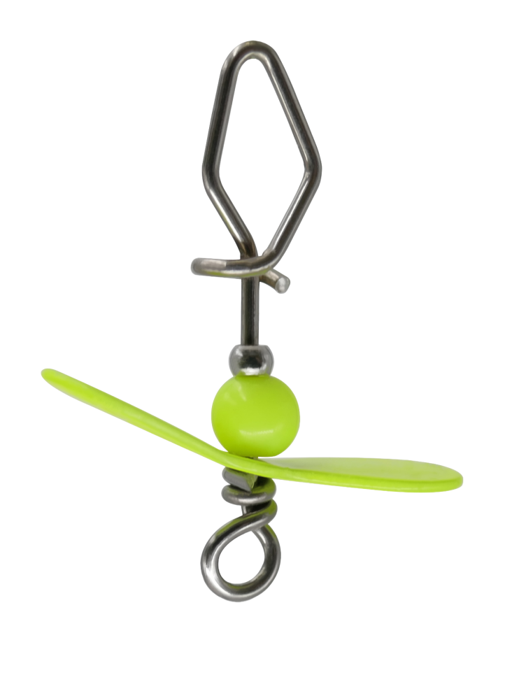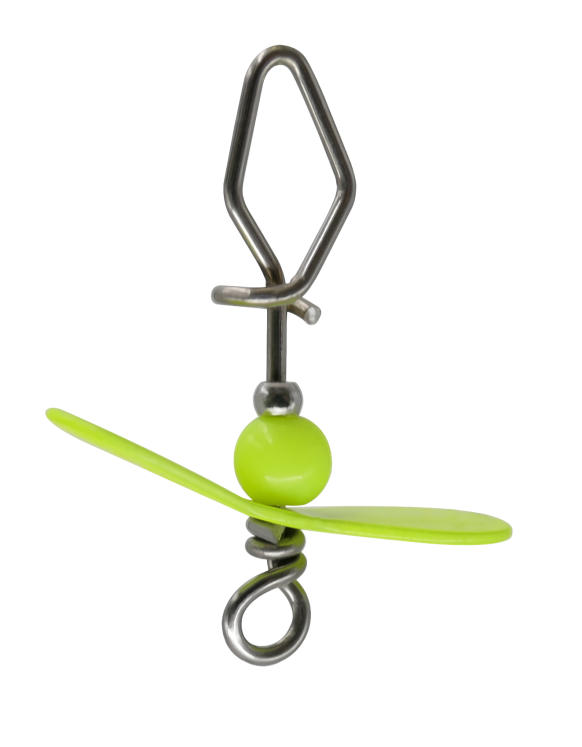 Met de VMC Spy Snap UV valt je kunstaas extra op. De propeller creëert microturbulenties die roofvis activeert en de opvallend chartreuse UV-afwerking zorgt voor een sterke visuele prikkel. Ideaal in combinatie met wat kleinere softbaits, voor de (finesse)visserij op baars, forel snoekbaars of roofblei. Verkrijgbaar in small, medium en large.
