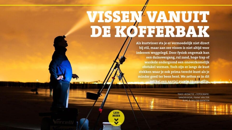 Vanwege het simpele feit dat De Witte niet zonder het vissen kan, ging hij toch op zoek naar mogelijkheden om aan zee zijn ding te kunnen doen. “Als je niet kunt traplopen en lange afstanden lopen ook een zware dobber is, ben je als kustvisser echter vrij beperkt”, zo heeft de Zeeuw gemerkt. Een quad (vierwielige motorfiets) kopen – zoals een clubgenoot die ook moeilijk ter been is deed – vond De Witte een brug te ver, dus ging hij op zoek naar stekken waar je bij wijze van spreken uit de kofferbak kunt vissen. “Het scheelt al een slok op een borrel als je niet ver hoeft te lopen, want je sjouwt stiekem toch altijd veel te veel spullen mee.”