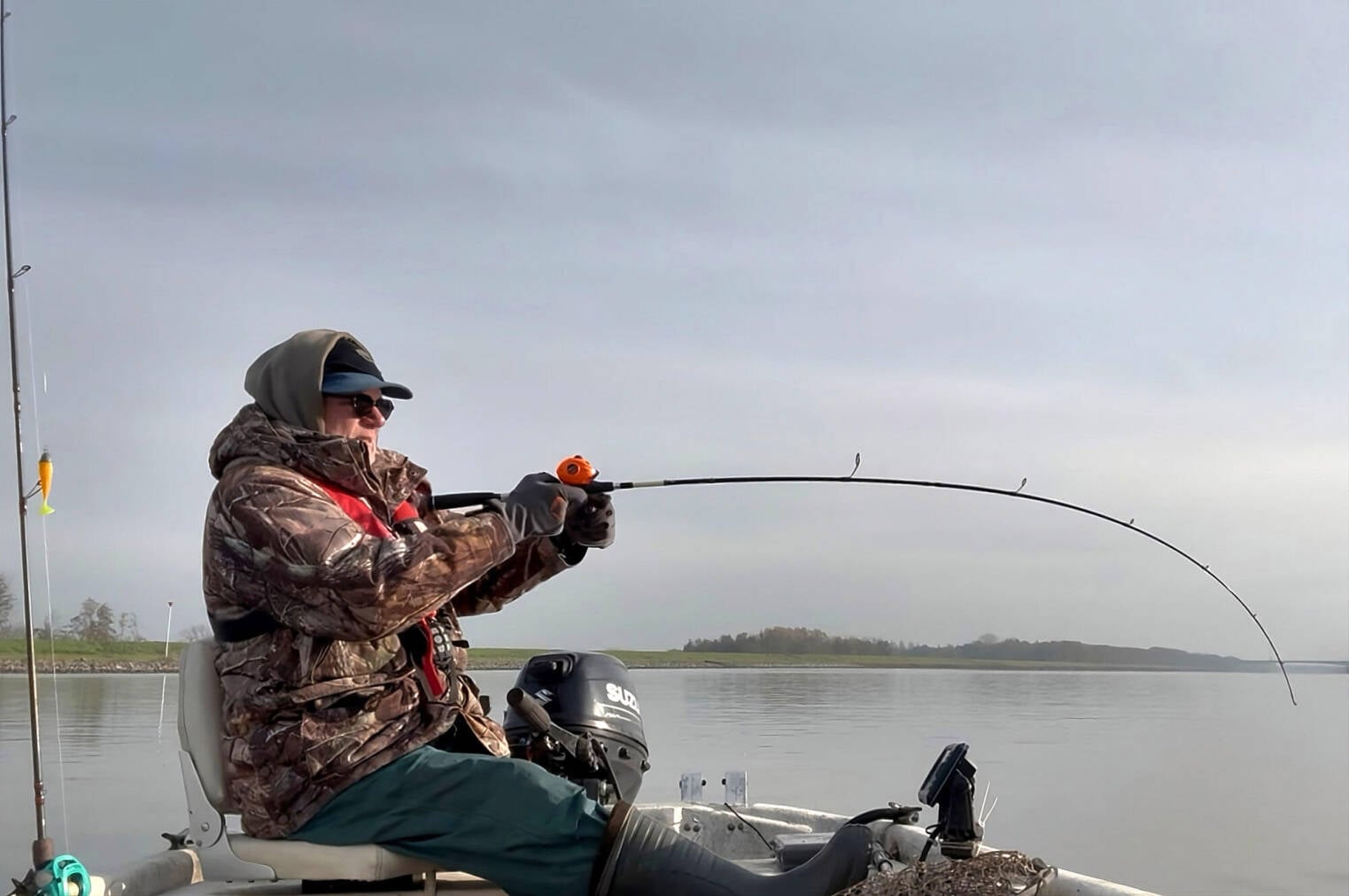 Het is eind februari in 2018 wanneer Verschoor in zijn eentje met zijn boot de Lek op gaat om op snoekbaars te vissen. “De omstandigheden waren goed: stroming en troebel water”, steekt hij van wal aan zijn keukentafel. Op de eerste stek krijgt hij het vermoeden dat de transducer van zijn dieptemeter niet correct staat afgesteld. “Daarom keek ik even overboord, maar vanwege het troebele water zag ik niets. Op de tast voelde ik ook niks. Maar ik bedacht een ‘slimme’ manier waarop ik wel even kon kijken wat er loos was”, graaft de eigenaar van Krover Fishing – een groothandel voor hengelsportartikelen – in zijn geheugen.