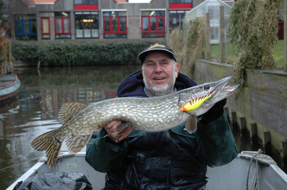 “Ideaal, toch? Je loopt hier zo de polder in en daar bij die aanlegsteiger lag jarenlang mijn visboot”, zegt Jan Eggers terwijl hij vanuit zijn huiskamer uitkijkt over de tuin en daaraan grenzende sloot aan de rand van Bovenkarspel. “Mijn vrouw en ik wonen hier al sinds 1992. In de tussenliggende 33 jaar heb ik heel wat snoeken gevangen – waaronder 1.040 metervissen – en zijn er heel veel zaken veranderd in de sportvisserij. Vissen kan ik al jaren niet meer als gevolg van Parkinson aan mijn linkerarm, maar zoals je merkt praat ik er nog wel graag over. Zullen we bij het begin beginnen?”
