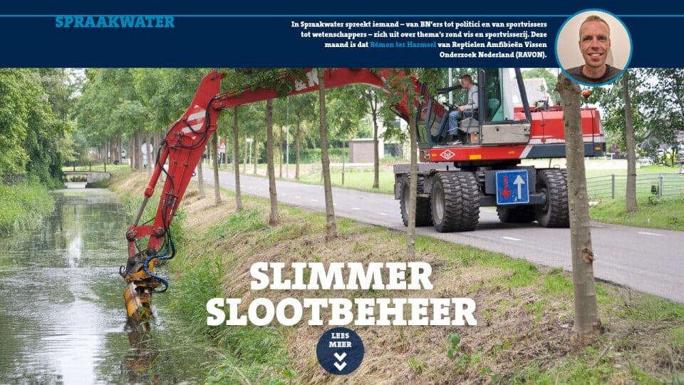 Dat steeds meer partijen het nut van ecologisch slootbeheer erkennen, stemt Ter Harmsel positief. “Wij promoten dit onder meer met een speciale veldgids en geven advies ten behoeve van de gedragscode voor waterschappen en agrarisch natuur- en landschapsbeheer. Daarbij benadrukken we altijd dat niet alleen zeldzame (vis)soorten, maar ook al het andere leven profiteert. Een goede biodiversiteit is niet zomaar een vinkje voor beleidsdoelen als de Europese Kaderrichtlijn Water en Basiskwaliteit Natuur. Het is een teken van schoon water en gezondere natuur in algemene zin. Hengelsportverenigingen die veel sloten als viswater hebben, zou ik zeker adviseren om dit punt bij de waterbeheerder te onderstrepen. Zo krijg je ze eerder mee en kunnen we in dit dossier samen optrekken.”