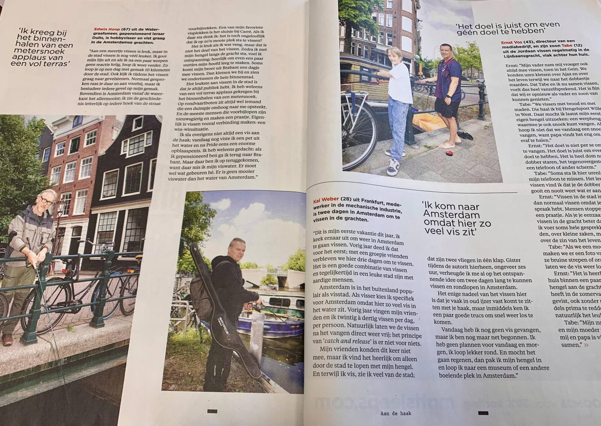 Dat het in de Amsterdamse grachten goed hengelen is, weten veel sportvissers als geen ander. Inmiddels is dit voor tal van ‘buitenstaanders’ ook geen geheim meer: eerder dit najaar publiceerde Het Parool in haar zaterdagse magazine PS van de Week een groot artikel over het fenomeen straatvissers. In het vijf pagina’s tellende artikel komen evenveel sportvissers aan het woord die graag in de grachten vissen. Daarin vertellen ze over hun vangsten, de reacties van omstanders (‘ik kreeg applaus van een vol terras bij het binnenhalen van een metersnoek’), en wat het vissen in de stad voor hen betekent. Dat levert hele mooie quotes op, waaronder dit pareltje: “Ook al sta je midden in een moderne stad, je moet je tijdens het vissen toch aan de wetten van de natuur houden.”