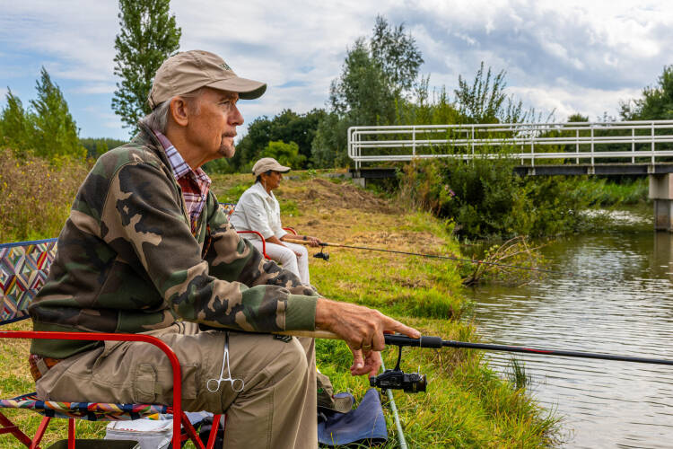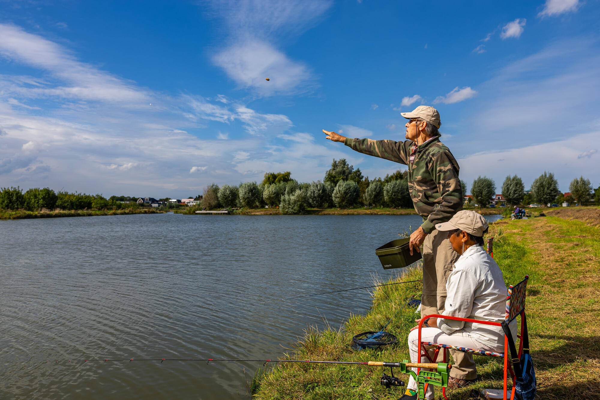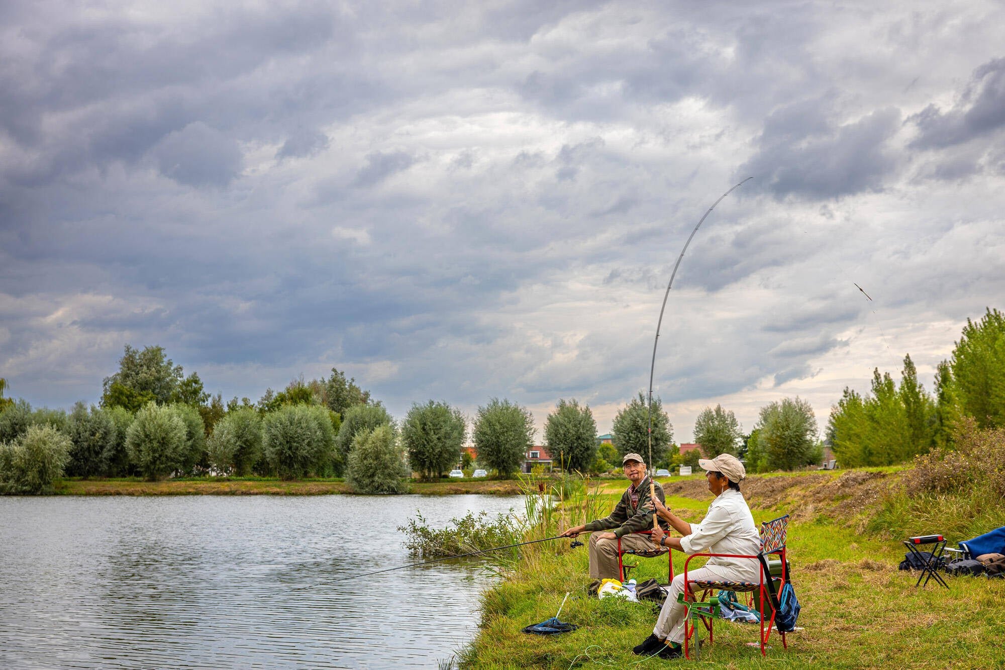 “Ja, het is een mooi watertje”, zegt Tom terwijl hij op zijn klapstoel plaatsneemt. “Dit hele natuurgebied is relatief nieuw. Het water is zo’n acht jaar geleden gegraven, net geen meter diep en heeft een schone zandbodem. Er zwemt karper in allerlei formaten, grote voorn en brasem, kolblei, bliek en zelfs een steur van een centimeter of zestig – die is vorig jaar nog gevangen. Variatie genoeg dus, vandaar dat we hier graag en dus ook regelmatig komen.” Bovendien doen ook de natuur en rust hier hen goed. “En vissen met mijn vrouw is vooral gezellig. Met haar naast me kom ik meer tot rust dan wanneer ik met mijn vrienden ga vissen. Dan krijg ik automatisch competitiedrang, dat is nu eenmaal mijn natuur. Als ik tien minuten geen beet krijg, ga ik altijd technisch of tactisch wat veranderen.”