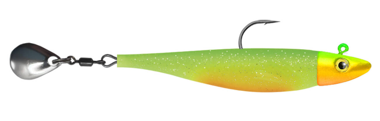 De Zand Fat Spin van Delalande is een uniek shadje dankzij het colorado spinnerblad aan de staart, wat voor extra trillingen en zichtbaarheid zorgt. Op de beschilderde loodvrije zamak jigkop zijn opvallende 3D-ogen aangebracht en de body is voorzien van realistische details. Dit shadje van 7 cm op een 4-grams jigkop valt zeker in de smaak bij forel, baars en snoekbaars, maar ook roofblei is er zeker niet vies van! Verkrijgbaar in acht kleuren.