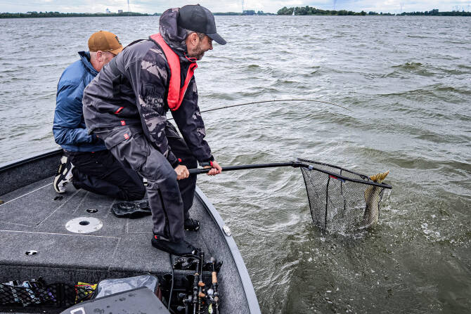 Kleine baars is doorgaans gemakkelijk te hanteren, maar hoe ga je om met een groter exemplaar? Fanatiek baarsvisser Willem Romeijn gebruikt voor het landen van deze roofvis vrijwel altijd zijn landingsnet – zeker bij écht grote baarzen die hij niet wil verspelen. “Vis je vanaf hoge kades, dan is een landingsnet helemaal onmisbaar. Want het aan de lijn optillen van grote baarzen is uit den boze. Kies voor een net met rubberen mazen, want daar blijft baars minder snel achter haken met zijn stekels en kieuwdeksels. De enige uitzondering op het gebruik van een landingsnet is wanneer ik met kunstaas vis waar dreggen aan zitten. Dan land ik baars altijd met de hand om te voorkomen dat de dreggen verstrikt raken in het net.”