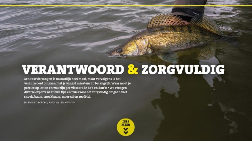 Een roofvis vangen is natuurlijk heel mooi, maar vervolgens is het verantwoord omgaan met je vangst minstens zo belangrijk. Waar moet je precies op letten en wat zijn per vissoort de do’s en don’ts? We vroegen diverse experts naar hun tips en trucs voor het zorgvuldig omgaan met snoek, baars, snoekbaars, meerval en roofblei.