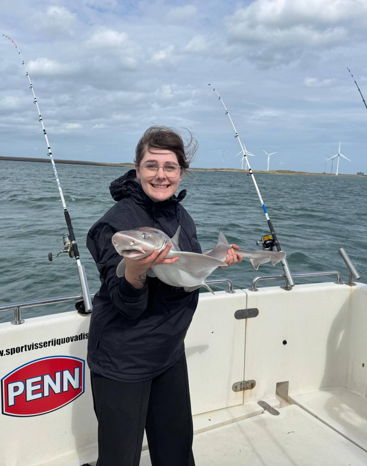 Jonna is een van de weinig vrouwen binnen de Sportvisunie die opgeleid is om haaien te taggen. “Ik heb dan stekelbaars gezenderd en dit jaar heb ik tijdens Sharkatag haaien getagd. Het zijn volwassen haaien met een gemiddelde grootte. Dus niet de hele grote uitschieters, maar gewoon de grootste groep, de bulk. Daarvan zijn er al veel getagd en is al best veel informatie van vergaard. Zo hebben we inzicht gekregen in de verspreidingspatronen en weten we nu dat de vrouwtjes van de haaien richting de kust van Frankrijk gaan, terwijl de mannetjes naar Schotland trekken.”